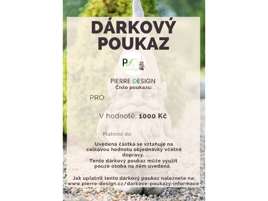 2.) Dárkový poukaz lze využít na všechno zboží na e-shopu Pierre-design.cz
