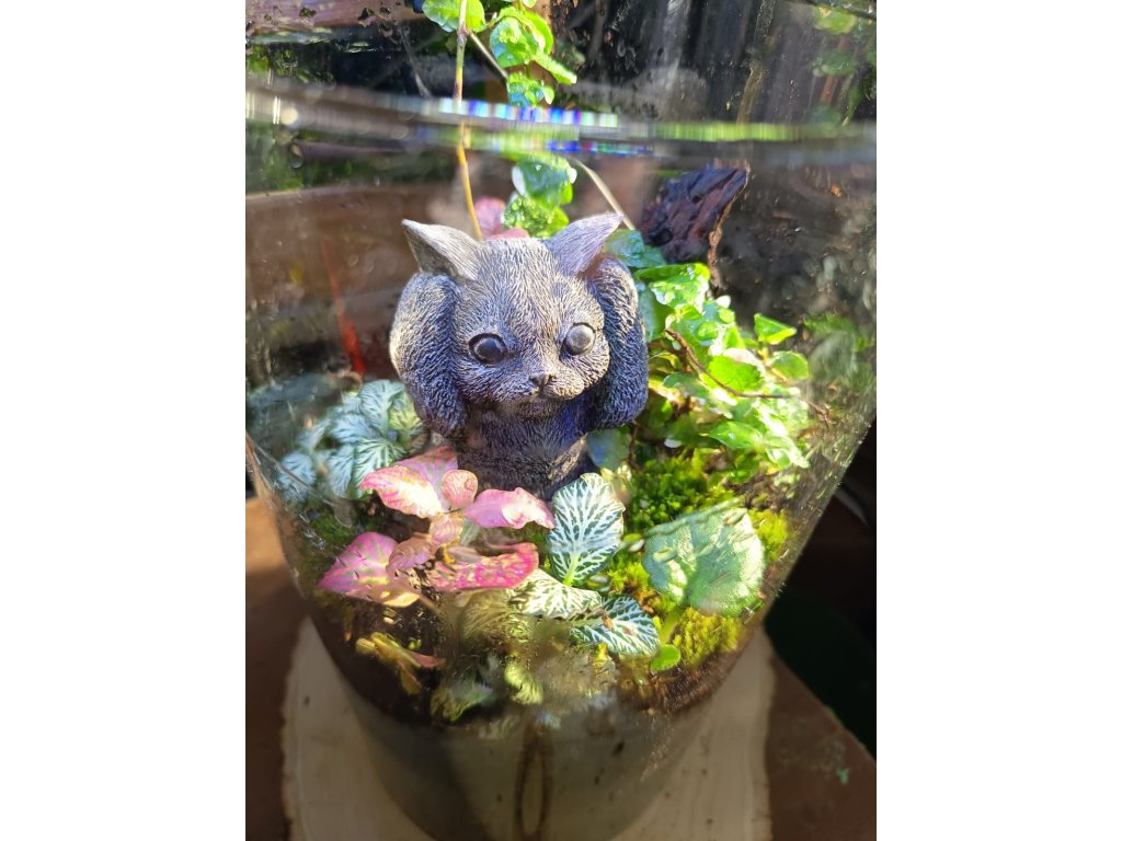 Představte si jedinečný kousek přírody, který oživí každý váš kout – seznamte se s naším „Lesem ve sklenici“. Tento ručně vysazený mini ekosystém v elegantní skleněné nádobě je láskyplně vytvořen tak, aby přinesl úsměv a harmonii do vašeho domova. Uprostřed huňaté zeleně a mechů se líně vyhřívá roztomilá soška kočičky, která stráží vaši denní pohodu.
