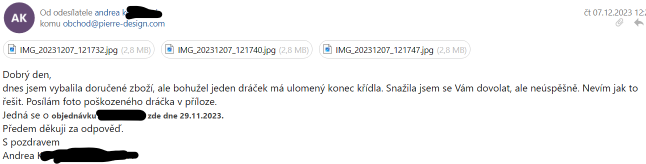 Samozřejmě jsme jí okamžitě a střelhbitě poslali nového.😉
