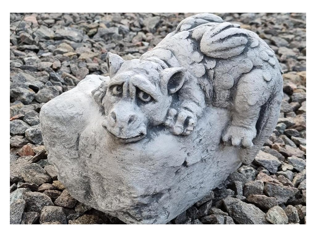 Zahradní betonová dekorace-Figurka dráčka na kameni