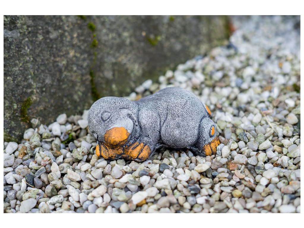 Roztomilý betonový spící krteček jako doplněk na skalku.