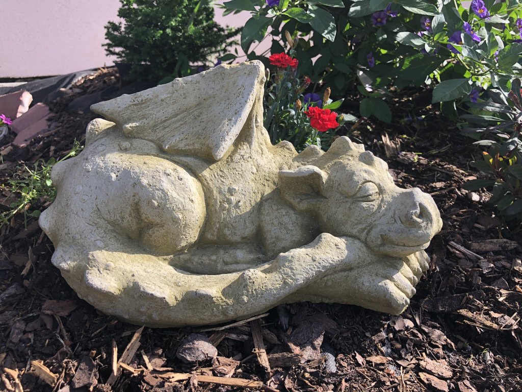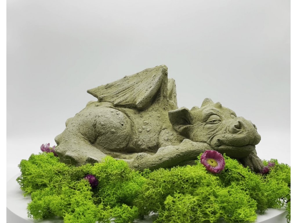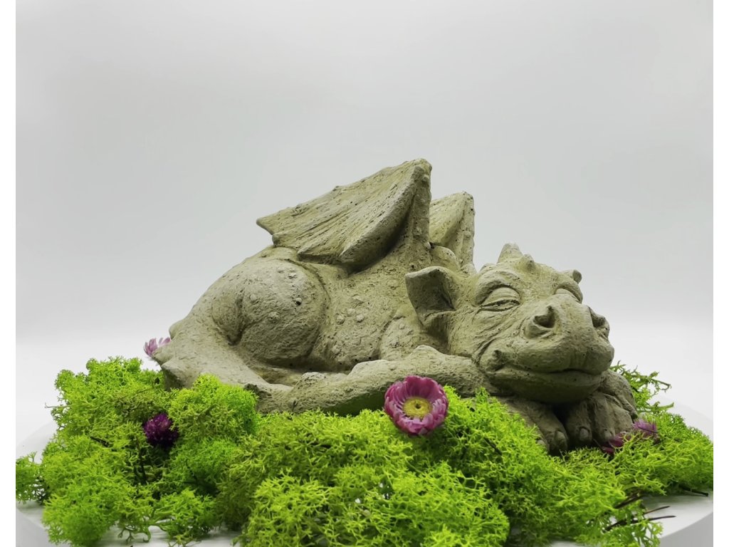 Zahradní betonová dekorace - Ležící dráček