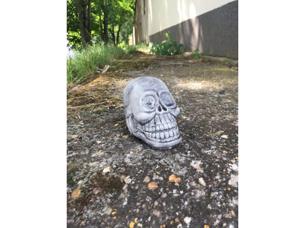 Malá betonová lebka jako perfektní dekorace na Halloween nebo jako dekorace pro sběratele a vyznavače gotického stylu.