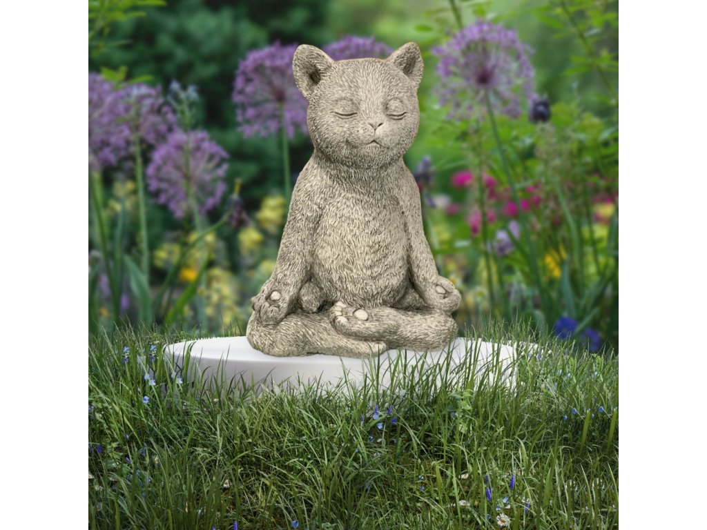Zahradní betonová dekorace Meditující kočička