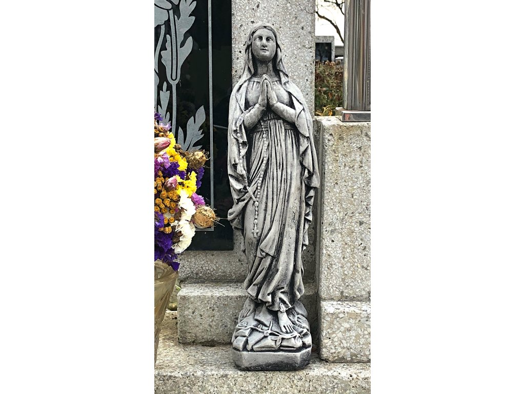 Betonová soška panenky Marie. Vhodná jako hřbitovní dekorace nebo dárkový předmět.
