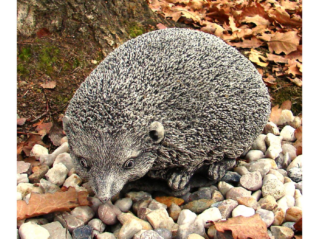Roztomilý betonový ježek, věrně imitující pravého ježka, vdechne zahradě život.
